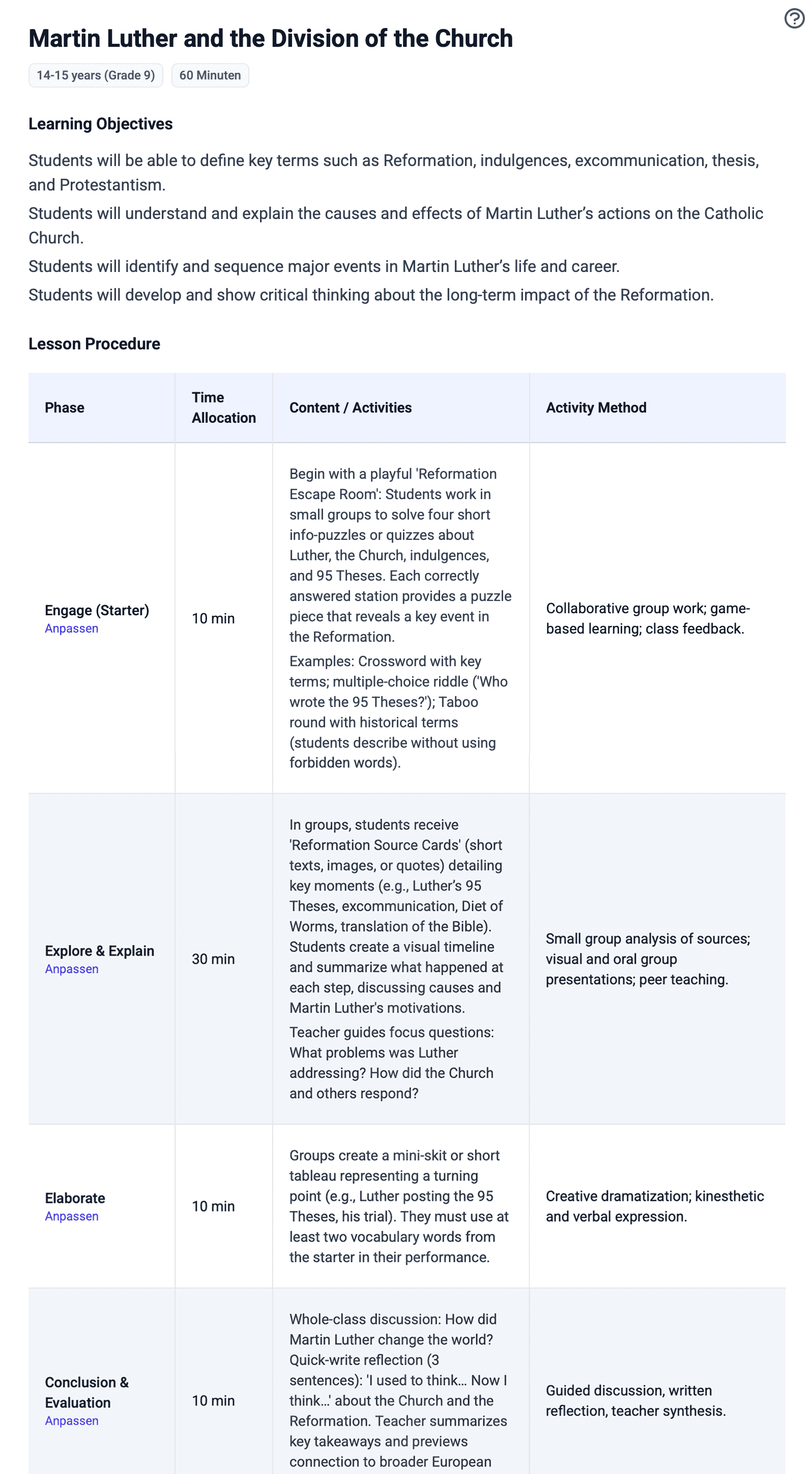 At first, I was skeptical about whether it would really work from a didactic perspective. But honestly: the lesson drafts are really well structured. I barely have to adapt anything, and students engage really well. It’s very practical and classroom-ready.
